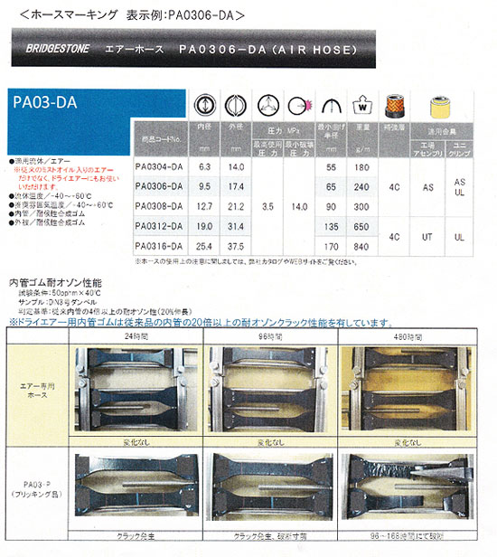 エアー専用ホースPA03-DAシリーズ(製造元 株式会社ブリヂストン)のご紹介