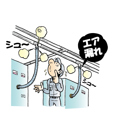 紙コップの印刷工場で、エアの搬送用に塩ビブレードホースを、吸引用にはスプリングホースを使用していたが、油で硬化しやすく、ホースを交換することに。現場ではカットして使うことが多く、特にスプリングなどは作業が大変だった。
