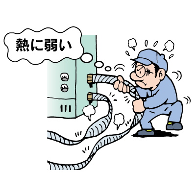 自動車部品工場で、製品の樹脂ペレット移送用途にサクションホースを使用していた。しかし、使用温度が約80℃になるのに、そのホースは耐熱が50〜60℃のため、耐熱性に不安があった。実際、ホースの劣化が早く、頻繁に交換もしなければならず、効率が悪いので対策する必要があった。