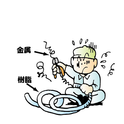 シャンプーやリンスを通すのにスプリングホースを使用していた工場で、地元自治体が産業廃棄物処理税を導入。そのため、金属製コイル(針金)入りのホースは廃棄する際、そのまま廃棄すると費用が通常の3倍かかることに。しかし分別は手間がかかるのでやりたくないし、その変わり廃棄費用のコストが膨らんで困っていた。