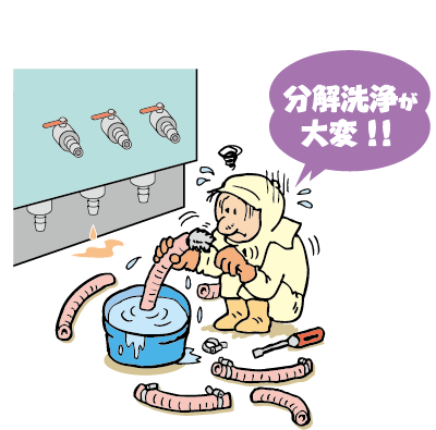ホースと継手の間にできる段差が極めて少ない継手に切替え分解洗浄が不要になり、洗浄作業時間が約30分短縮になった。また、漏れ抜け防止の継手なのでホースが抜けるトラブルもなくなり、生産効率アップにつながった。