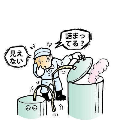 医薬・化粧品・化学工場 ホースの内部で、流している塗料が硬化して詰まってしまう