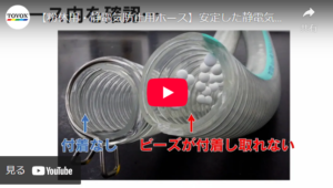 トヨックス-動画ライブラリー ホースご使用メリット 粉粒体帯電比較 トヨフーズアースホース トヨトップ-E100度ホース
