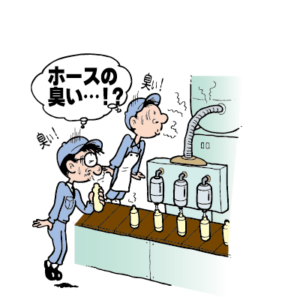 医薬・化粧品・化学工場 塩ビホースの臭いが製品に影響し、対策が急務に