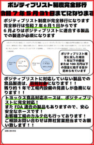 令和7年6月1日 ポジティブリスト制度完全移行 令和7年6月1日よりポジティブリスト制度完全移行が実施されます。皆様の製造工場においては、既に移行に向けた準備はお済でしょうか?罰則規定もあり、なかなか厳しい制度となってお […]
