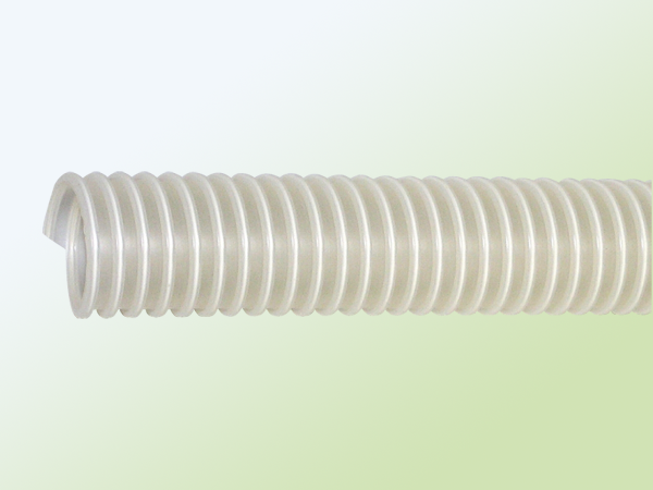 優れた静電気防止効果により食品粉体輸送に最適。ホースが透明、輸送物の確認ができる。低発塵材料使用。脱塩ビのダクトホース。