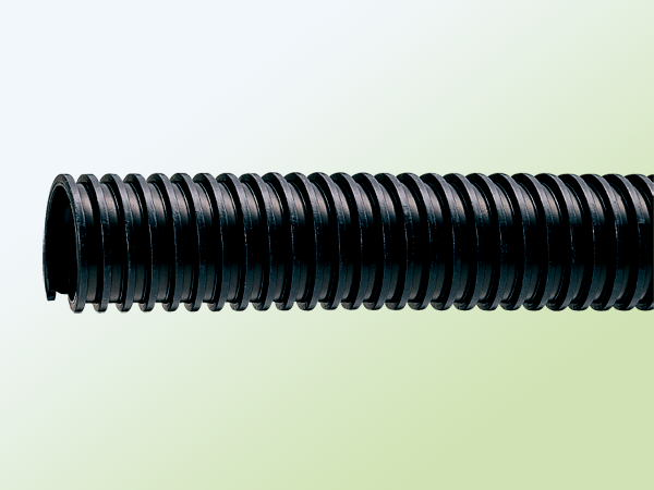 チューブがEPDMゴム、補強リブがポリプロピレン製のダクトホース。EPDMの特性により、耐寒・耐熱・耐摩耗・屈曲性に優れるホースです。耐摩耗性能は塩ビダクトの2倍以上。ホースが摩耗しやすい、鉄粉のような粉粒体の輸送に最適。サイズは幅広くφ38ーφ300をラインナップ。